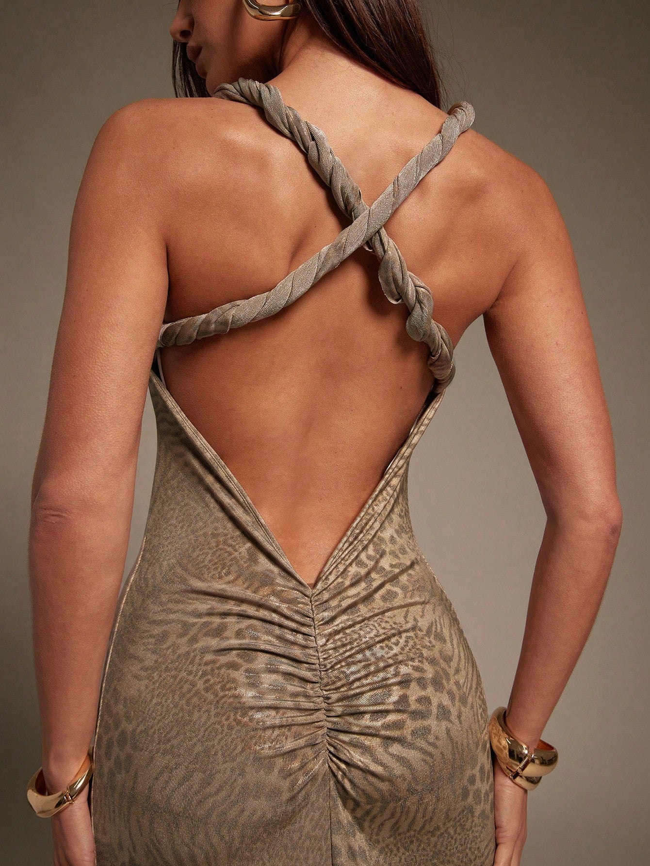 Elegant Twisted String Detail Backless Sleeveless Dress