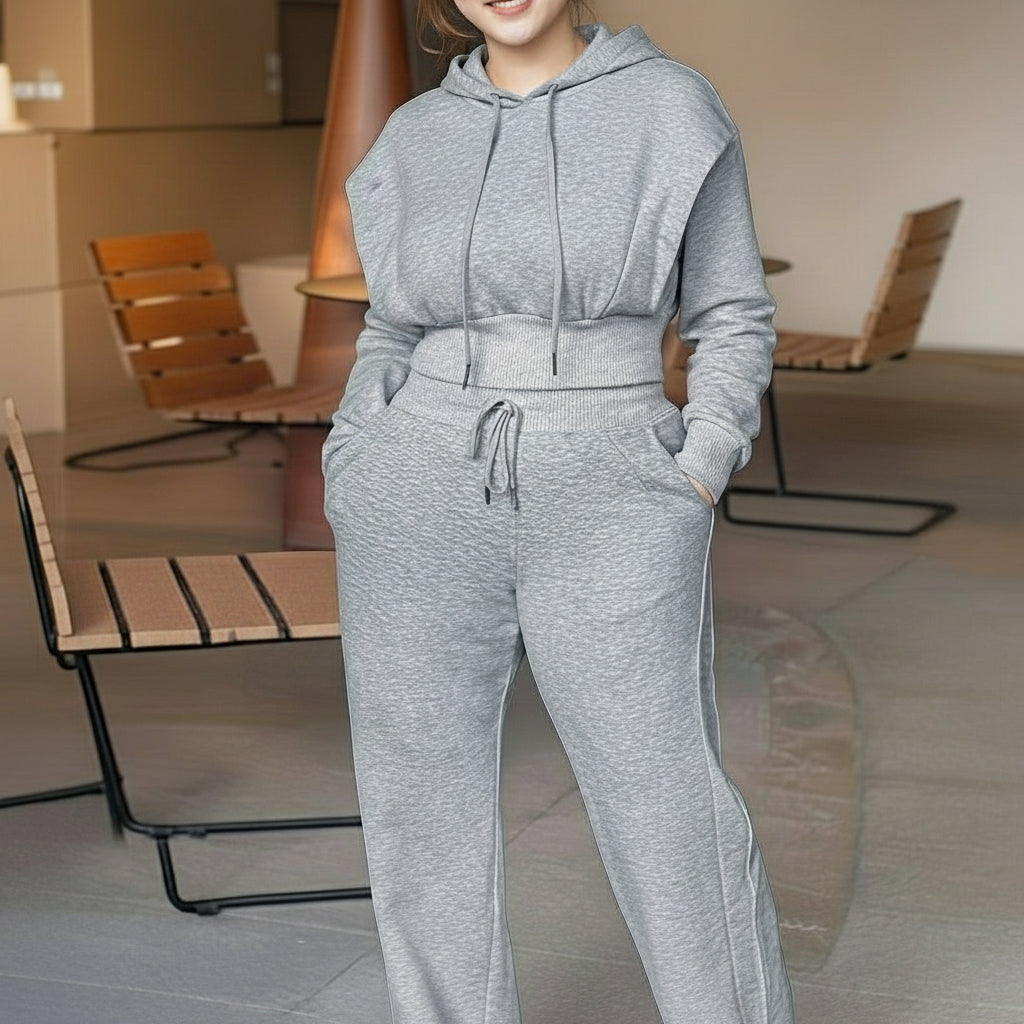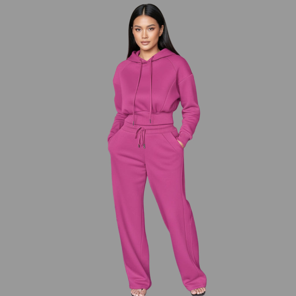 Fashionable Cropped Hoodie with Wide-Leg Pants Outfit
