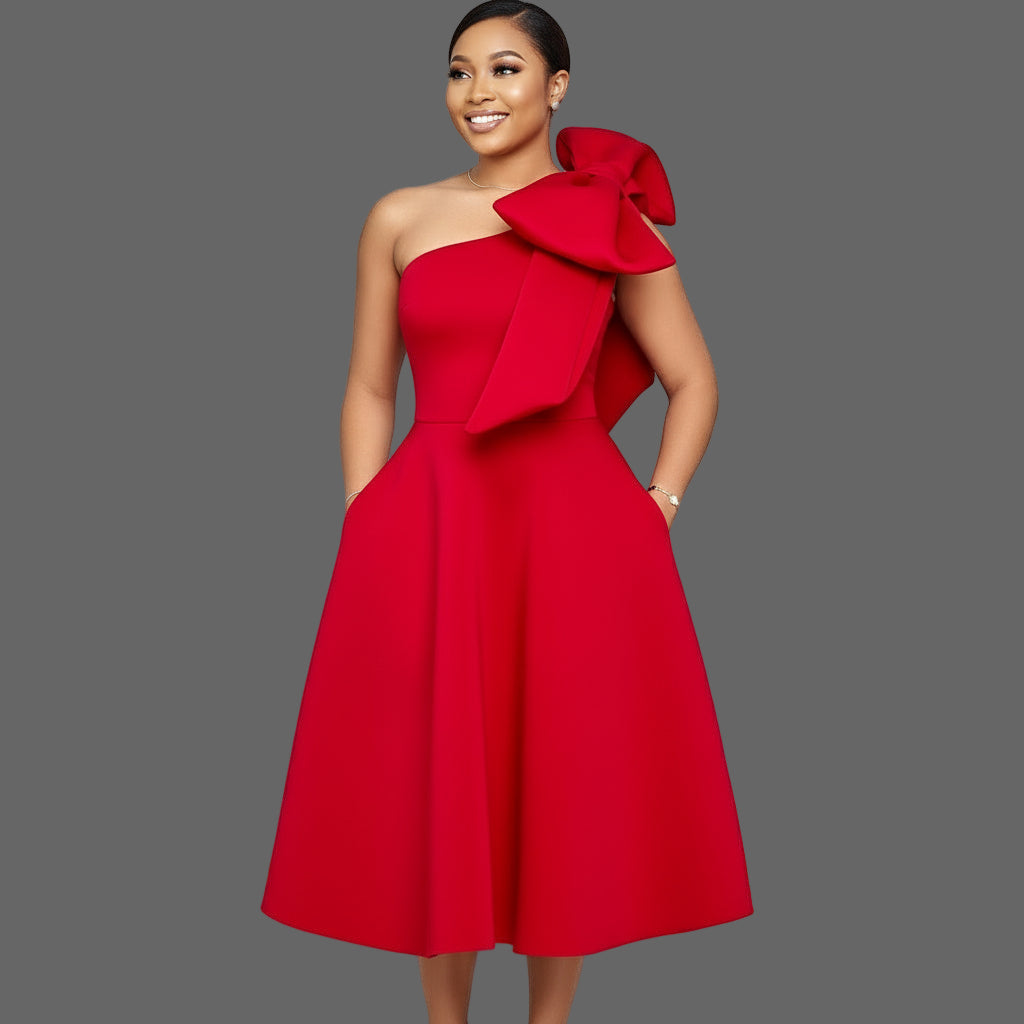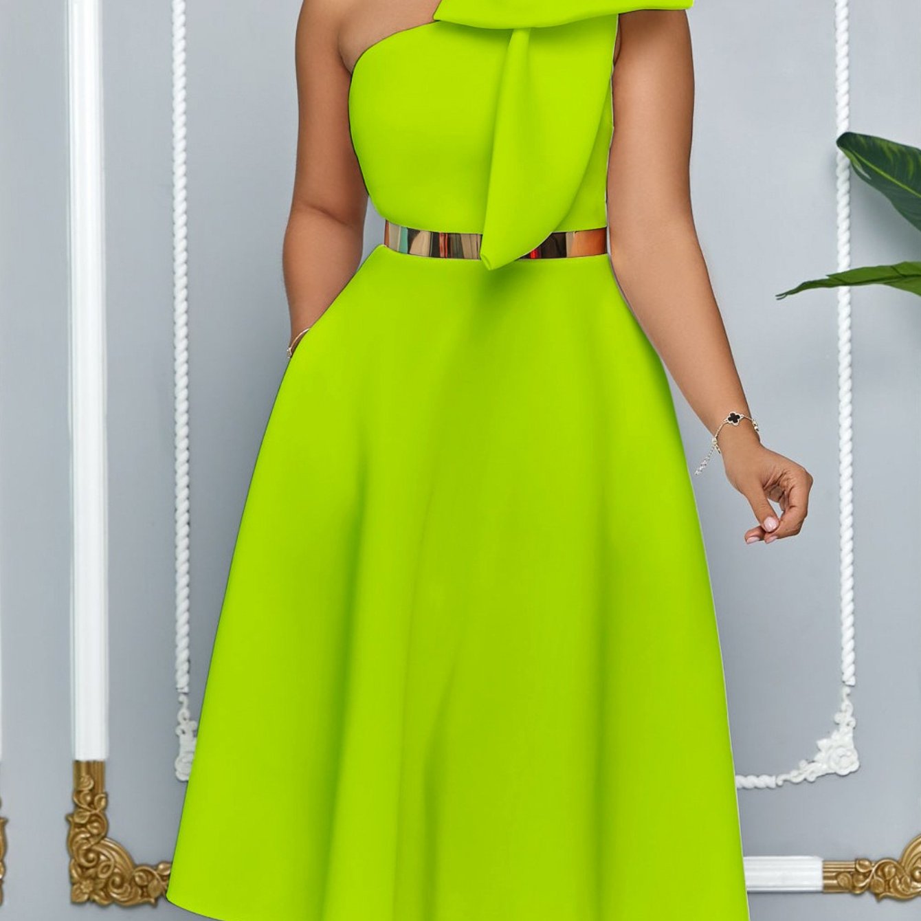 One-Shoulder Slanted Bow Neckline A-Line Maxi Dress