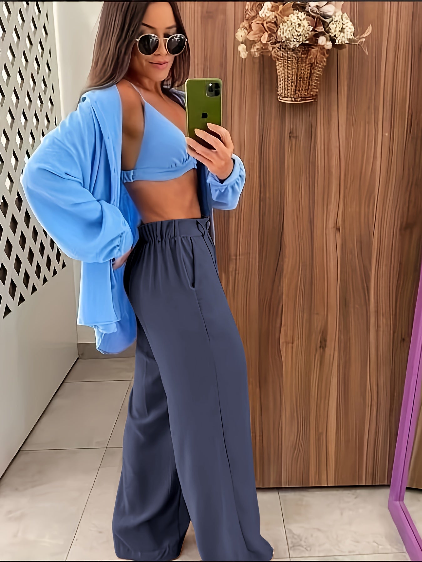 Polyester Trousers with Elegant Straight Legs