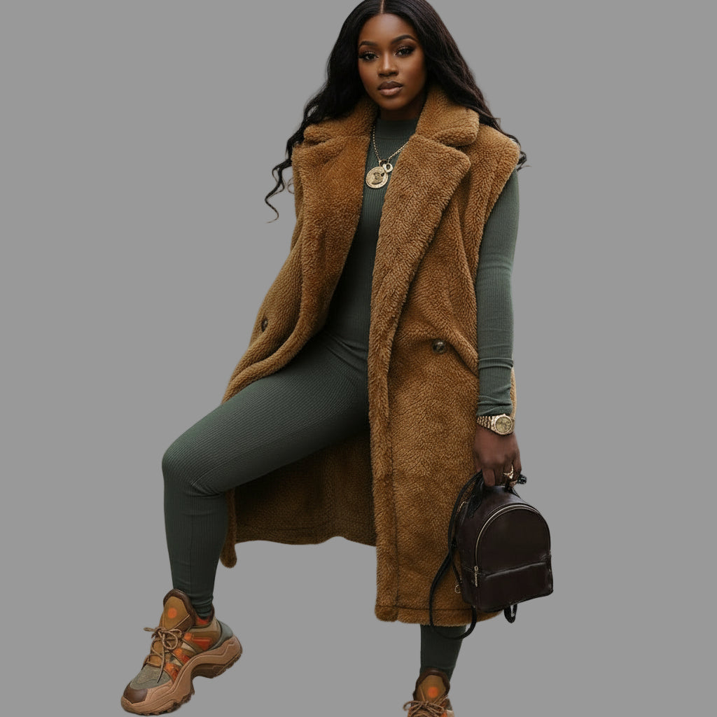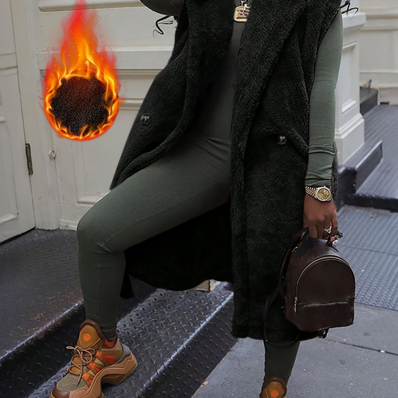 Lapel Collar Teddy Coat with Double Button and Pockets